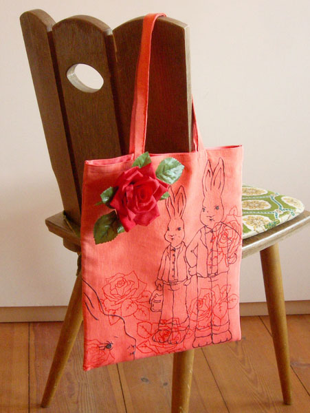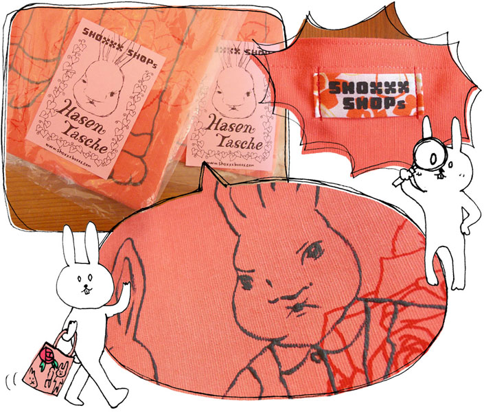 hand painting + Japanese Gocco print bag "Hasen Tasche" - 2007 -