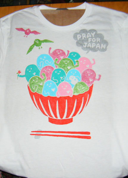 hand painting T-shirts for "pray for Japan" - 2011 -